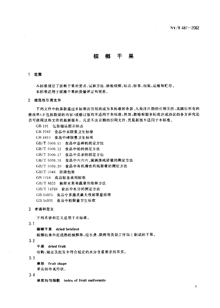 NY/T 487-2002 槟榔干果