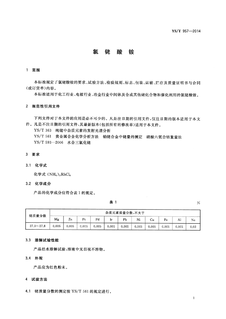 YS/T 957-2014 氯铑酸铵