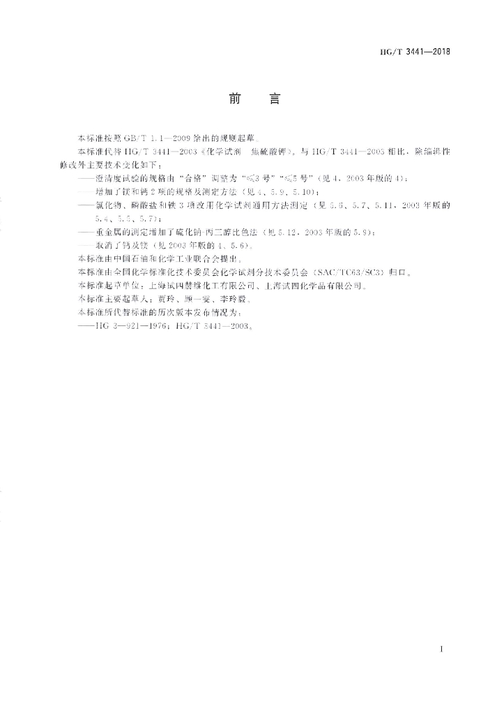 HG/T 3441-2018 代替 HG/T 3441-2003 化学试剂焦硫酸钾