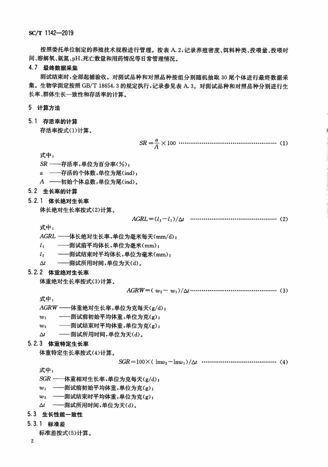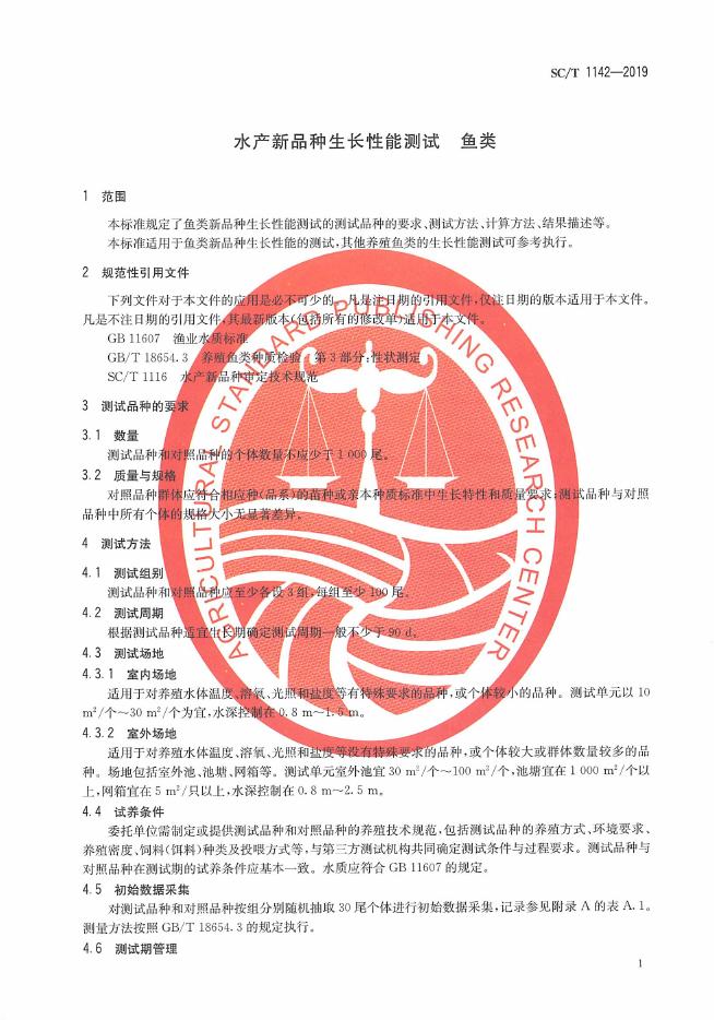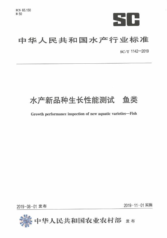 SC/T 1142-2019 水产新品种生长性能测试 鱼类