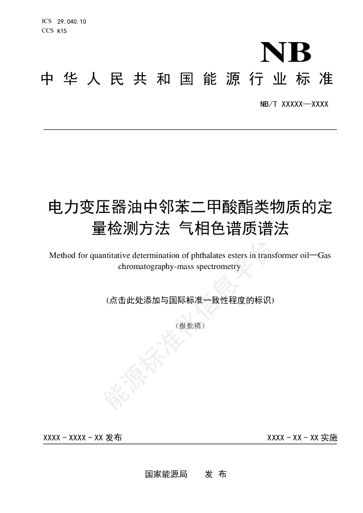NB/T 11390-2023 电力变压器油中邻苯二甲酸酯类物质的定量检测方法 气相色谱质谱法