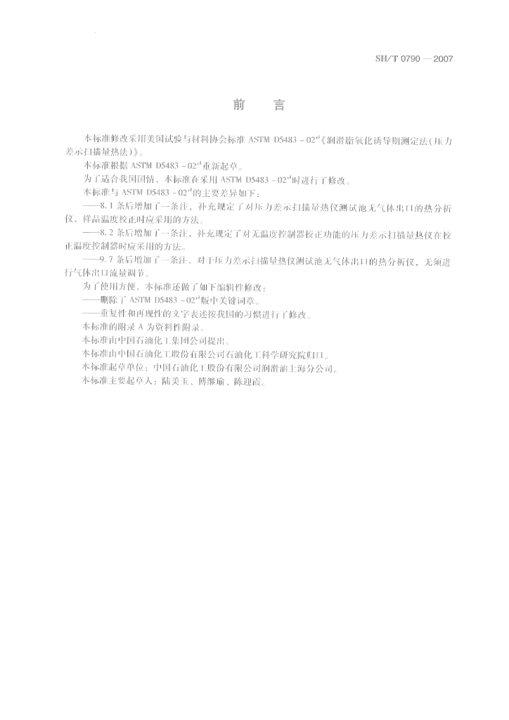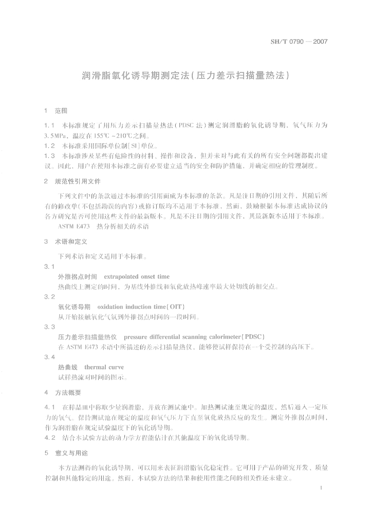 SH/T 0790-2007 润滑脂氧化诱导期测定法(压力差示扫描量热法)