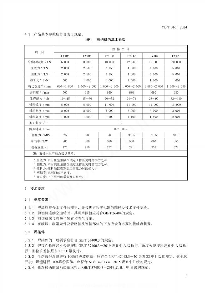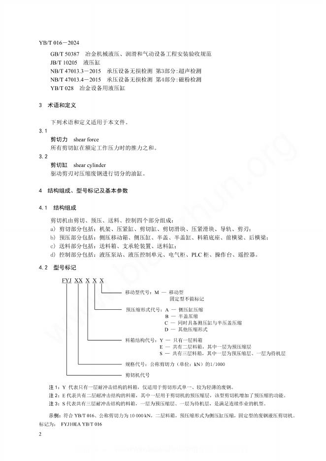YB/T 016-2024 废钢液压剪切机
