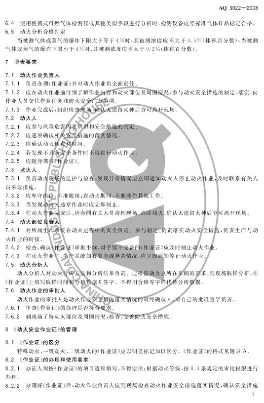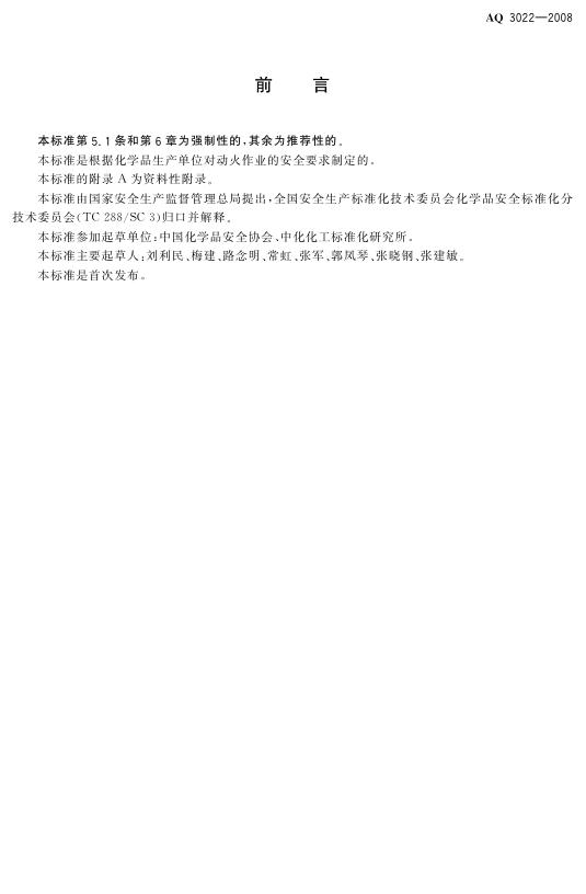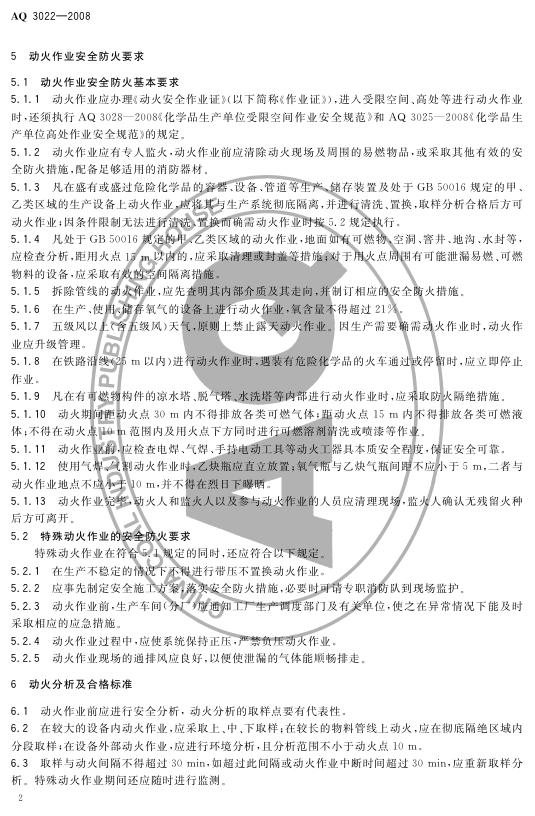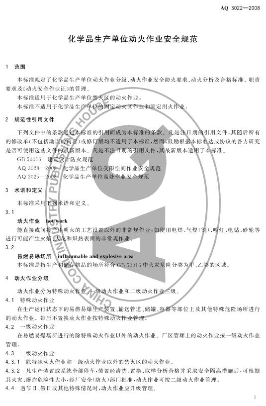 AQ 3022-2008 化学品生产单位动火作业安全规范