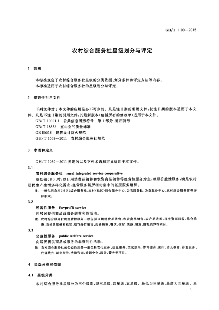 GH/T 1100-2015 农村综合服务社星级划分与评定
