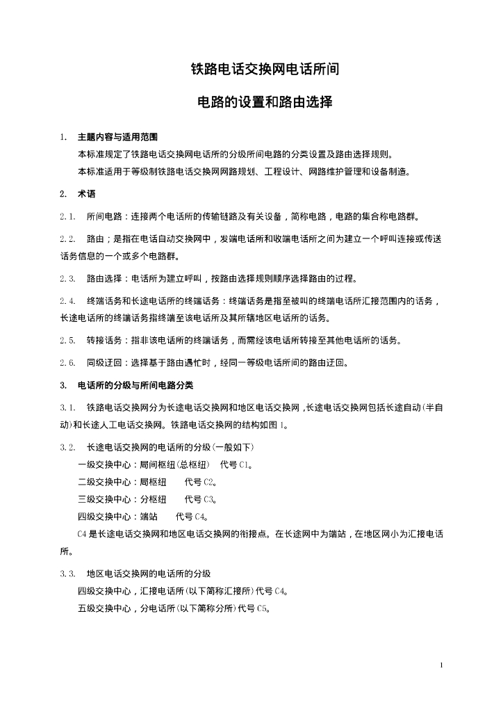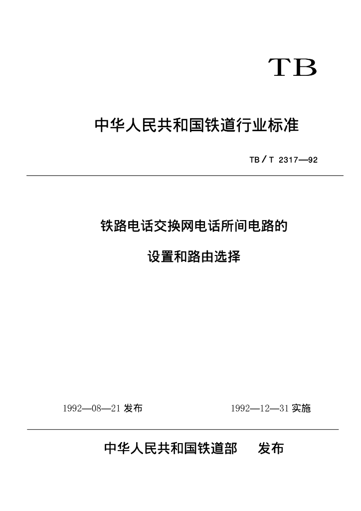 TB/T 2317-1992 铁路电话交换网电话所间电路的设置和路由选择
