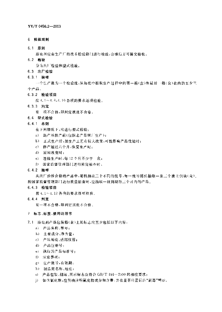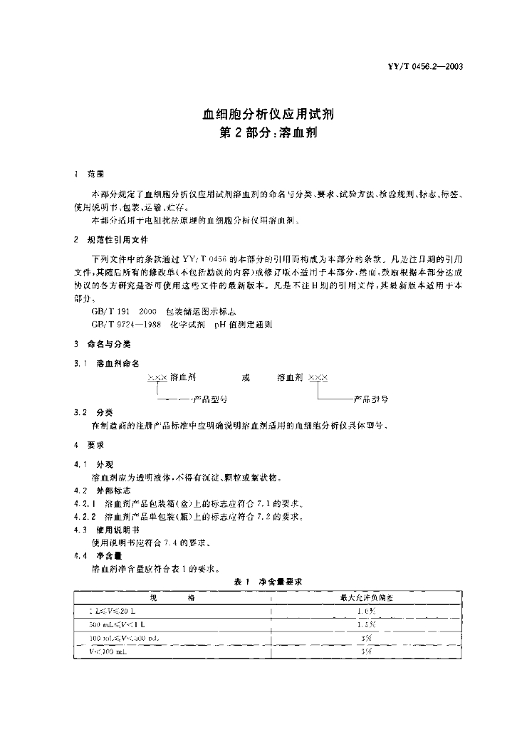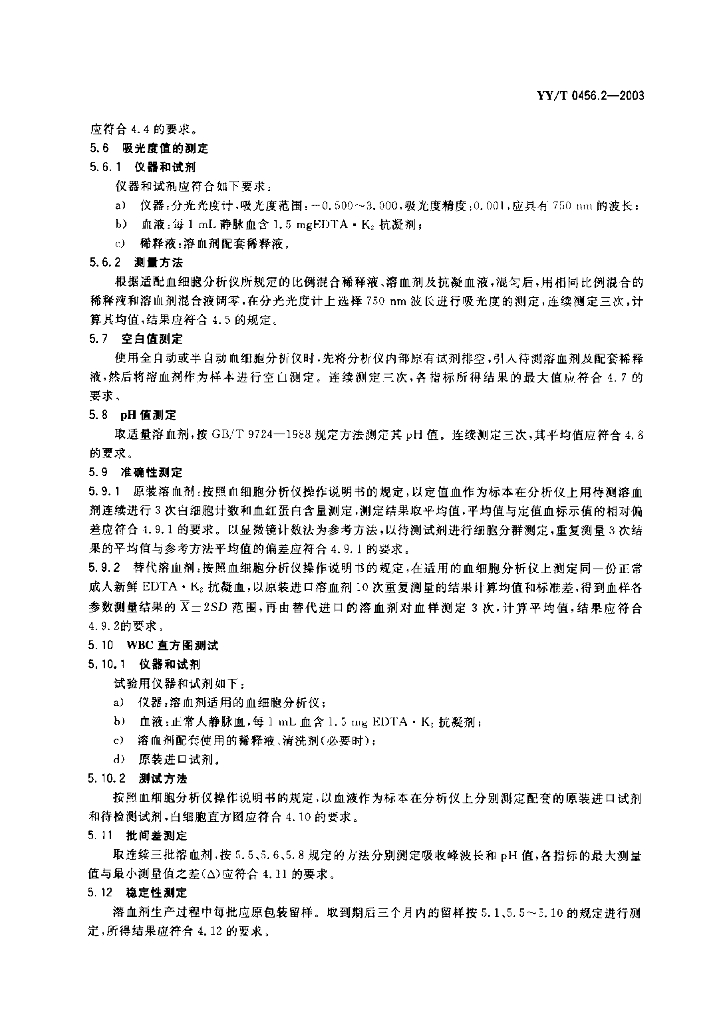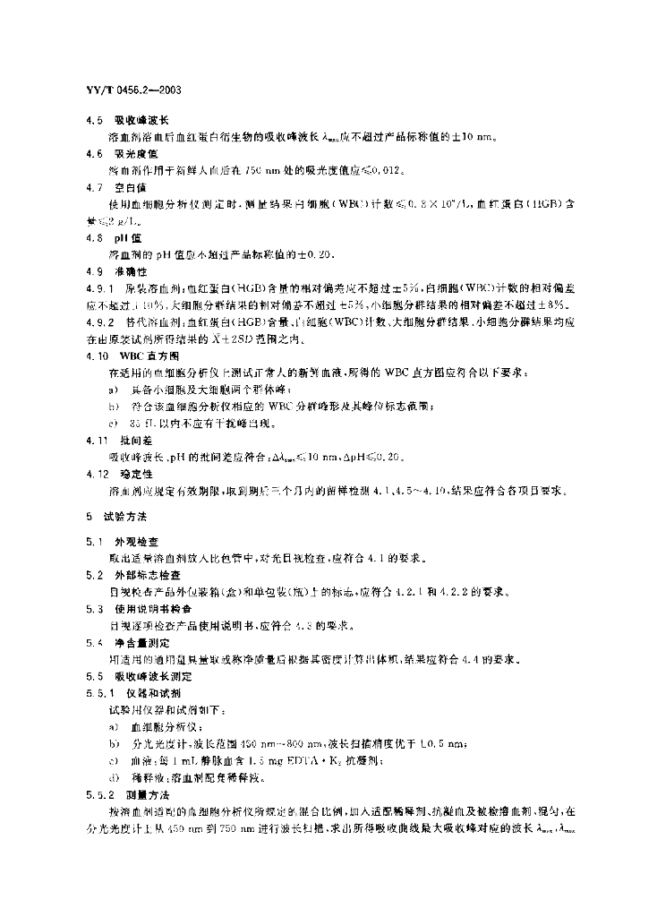 YY/T 0456.2-2003 血细胞分析仪应用试剂 第2部分:溶血剂