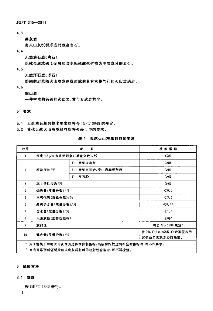 JG/T 315-2011 水泥砂浆和混凝土用天然火山灰质材料