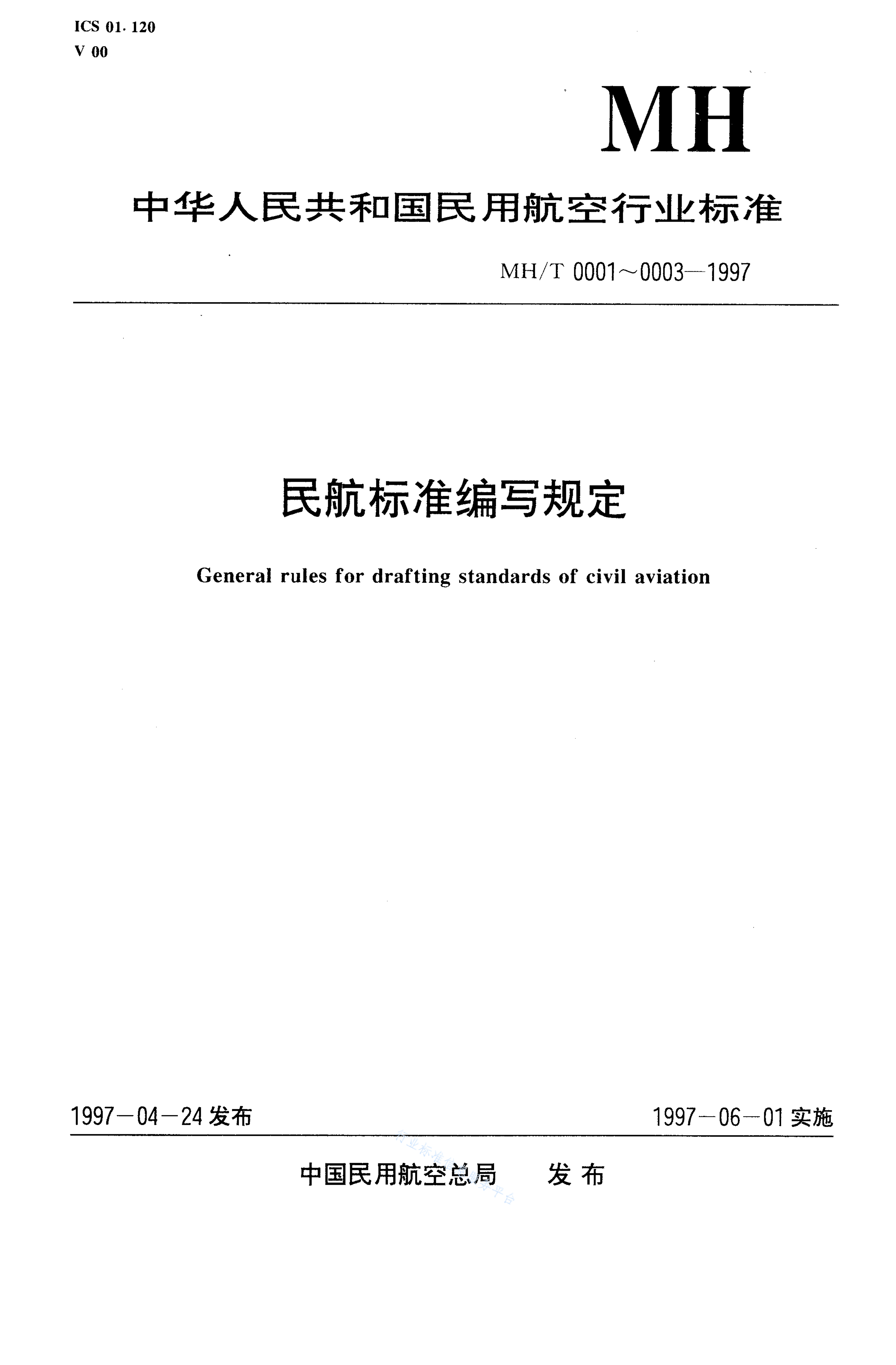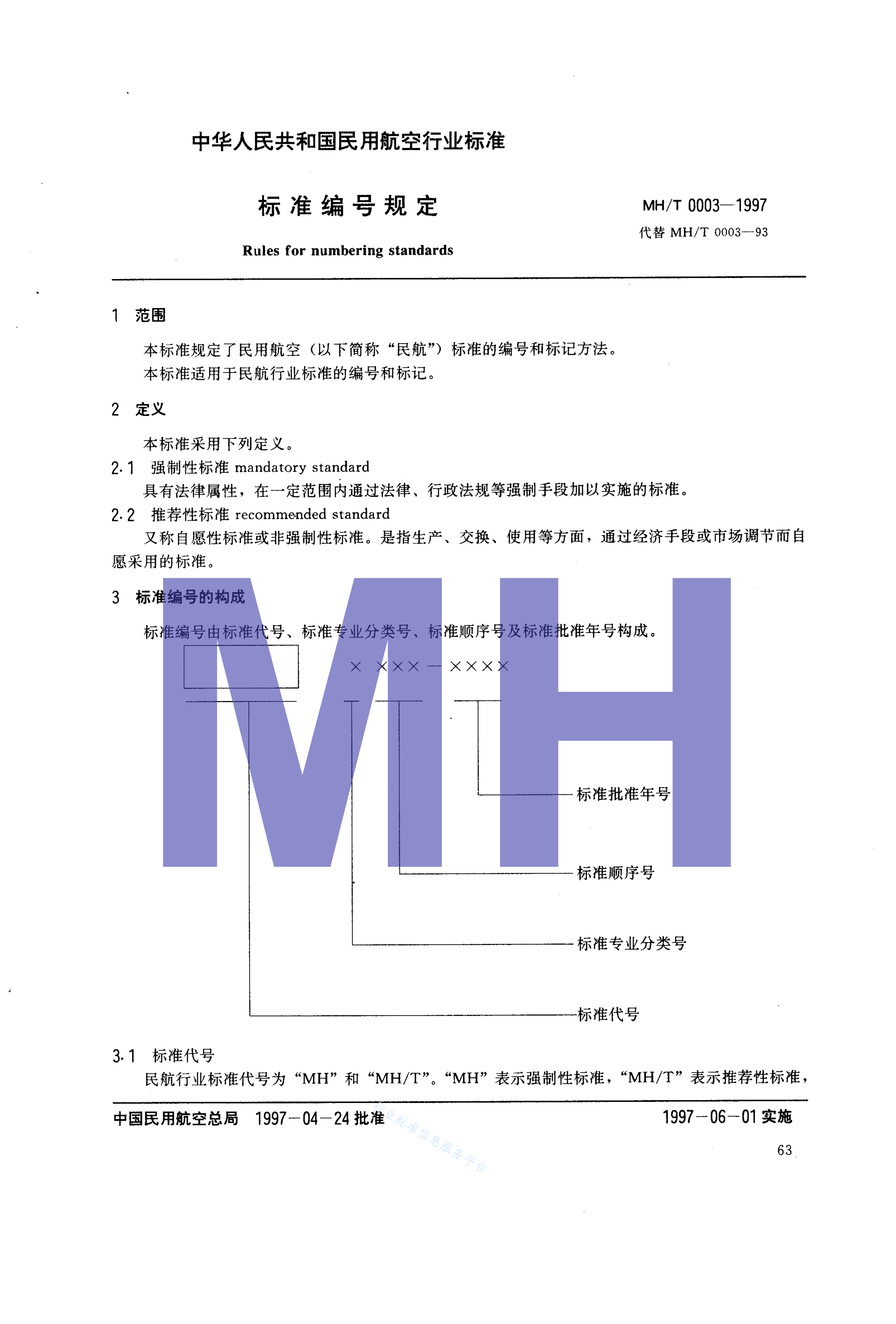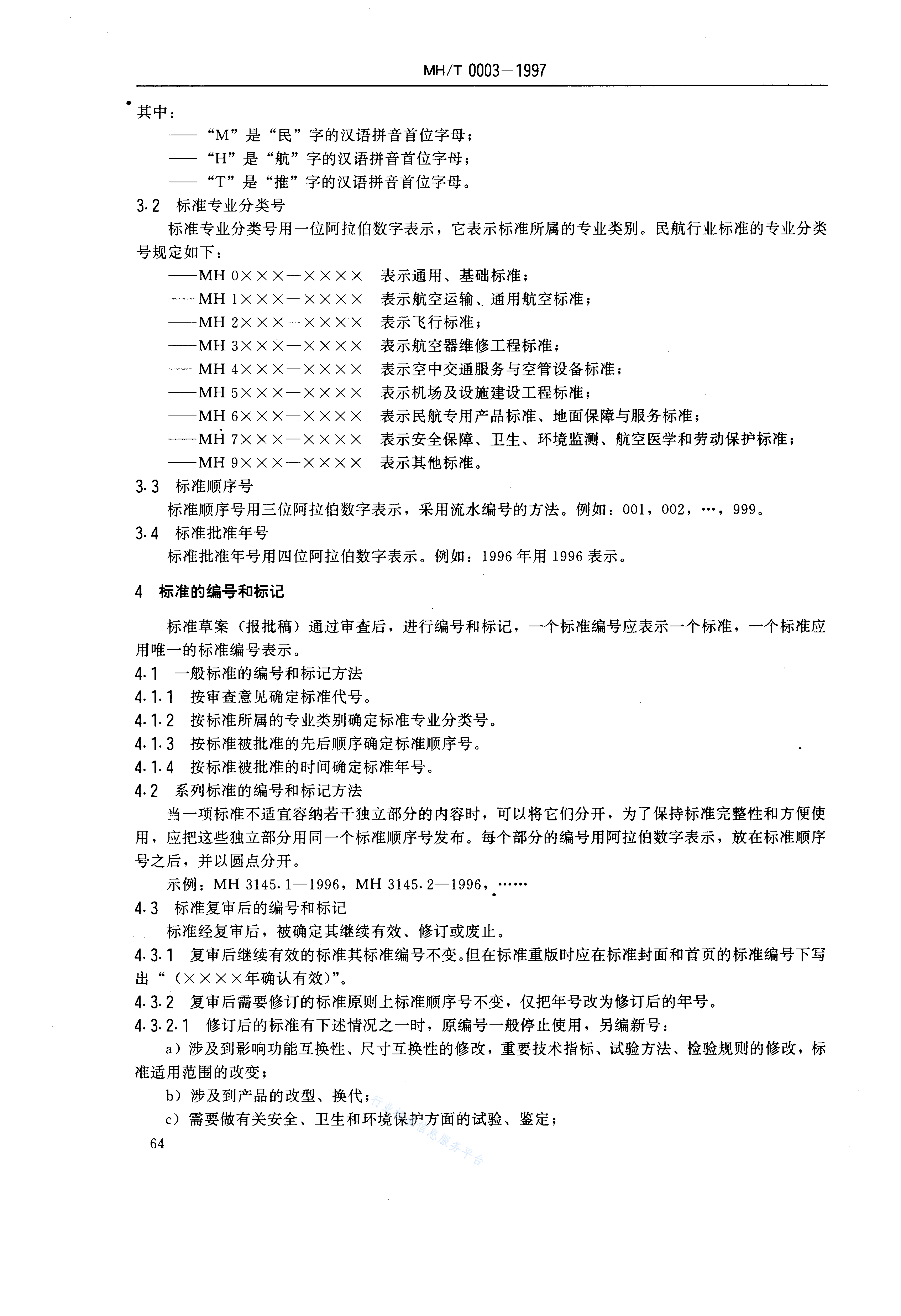 MH/T 0003-1997 标准编号规定
