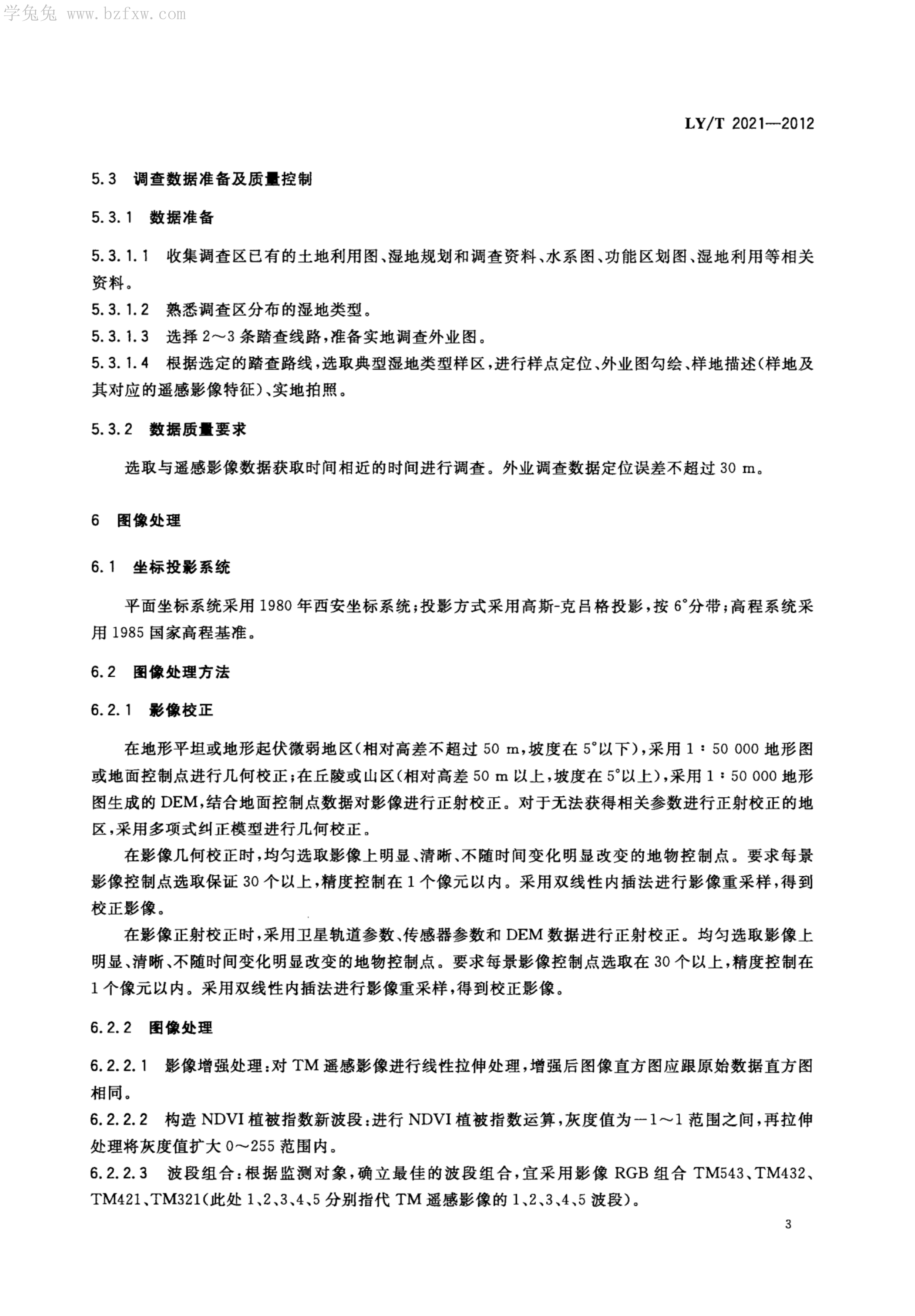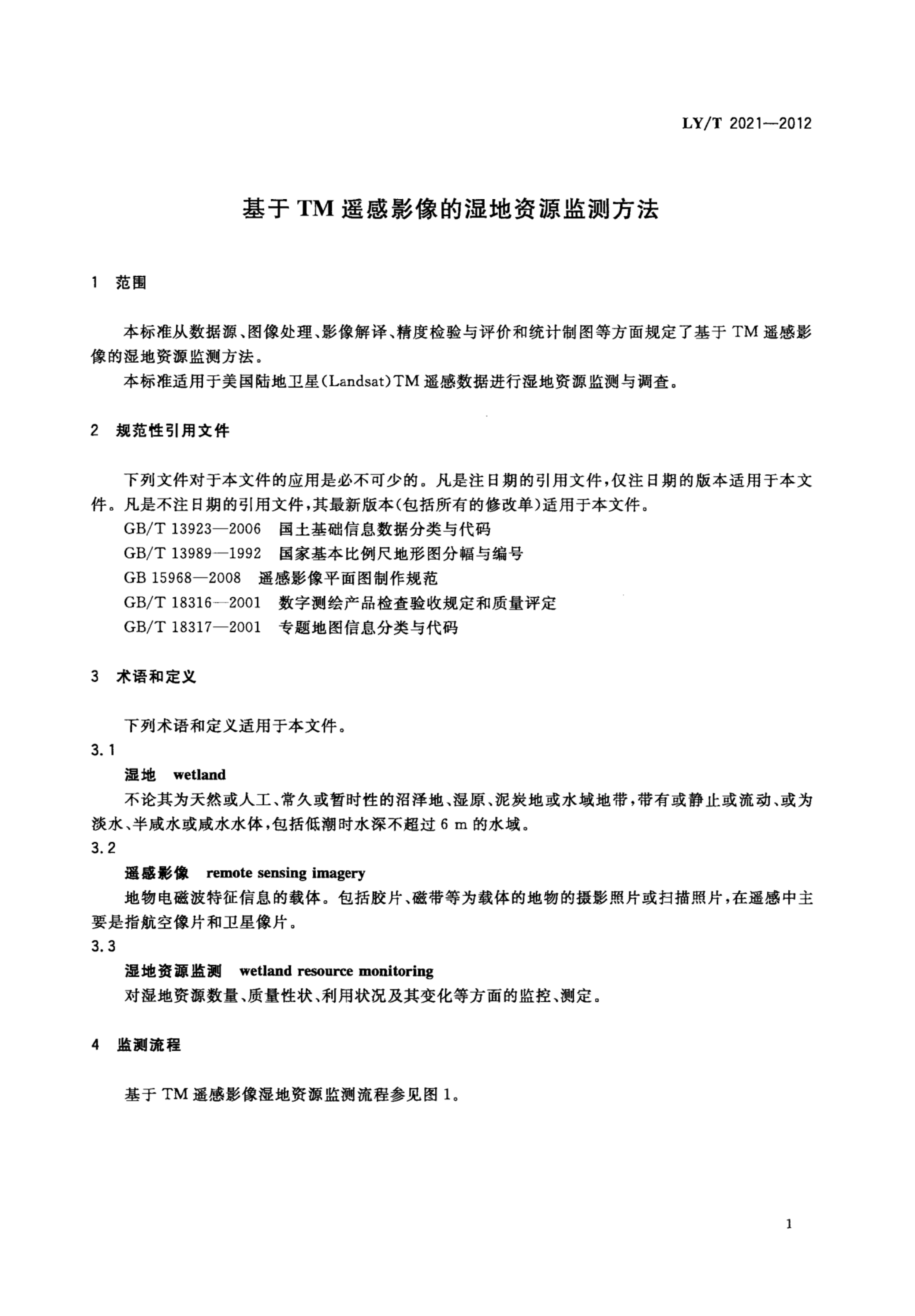 LY/T 2021-2012 基于TM遥感影像的湿地资源监测方法