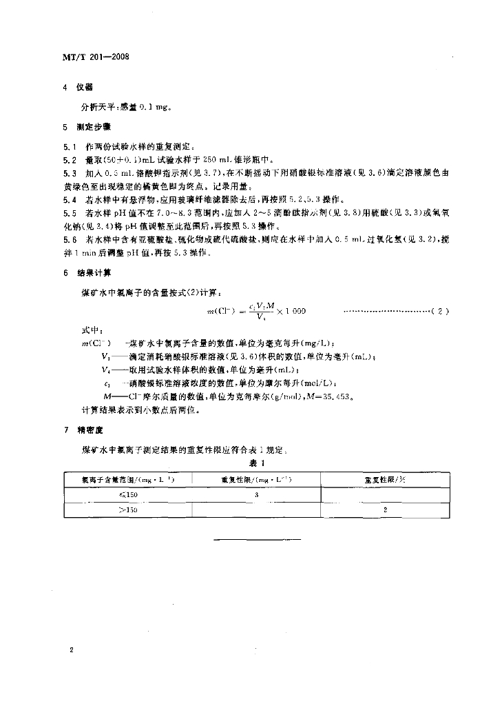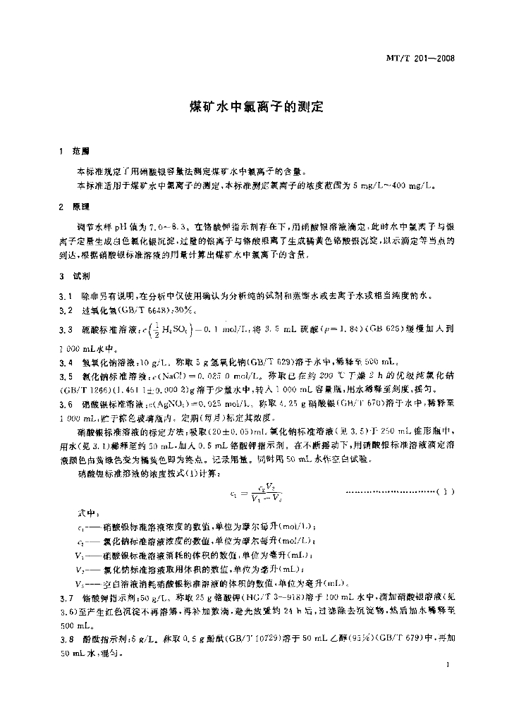 MT/T 201-2008 煤矿水中氯离子的测定