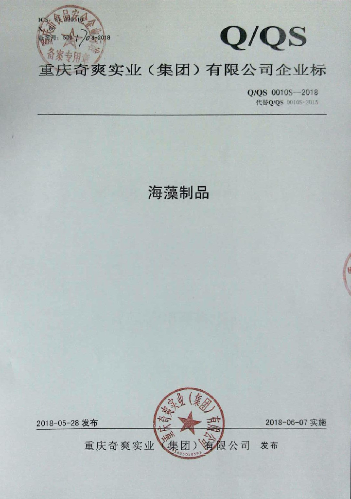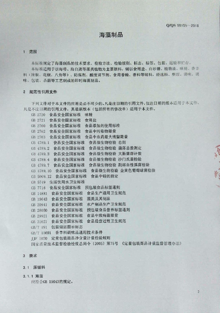 Q/QS 0010S-2018 海藻制品