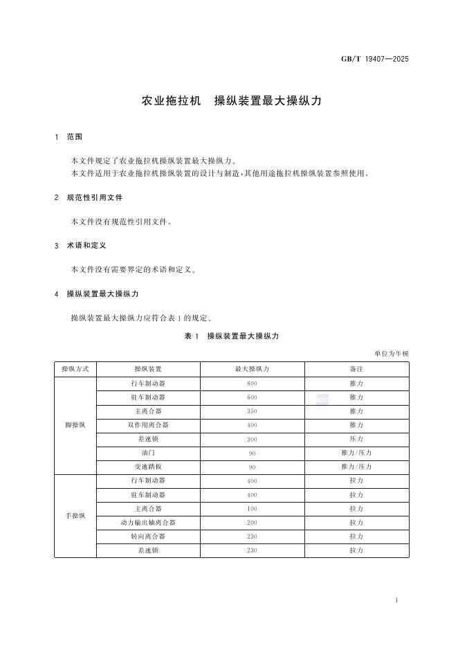GB/T 19407-2025 农业拖拉机 操纵装置最大操纵力