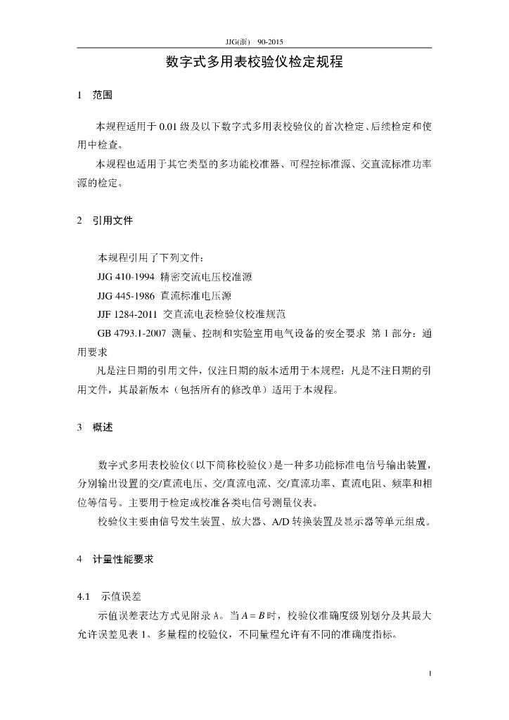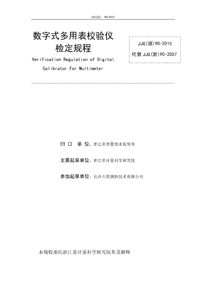 JJG(浙)90-2015 数字式多用表校验仪计量检定规程