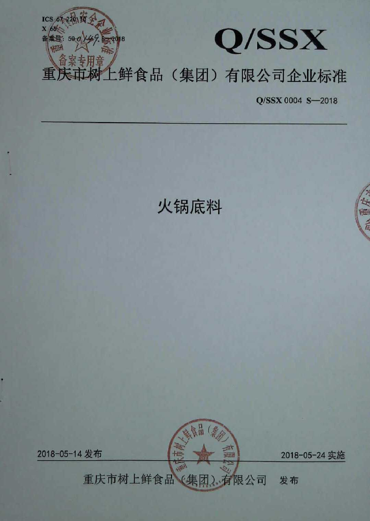 Q/SSX 0004S-2018 火锅底料