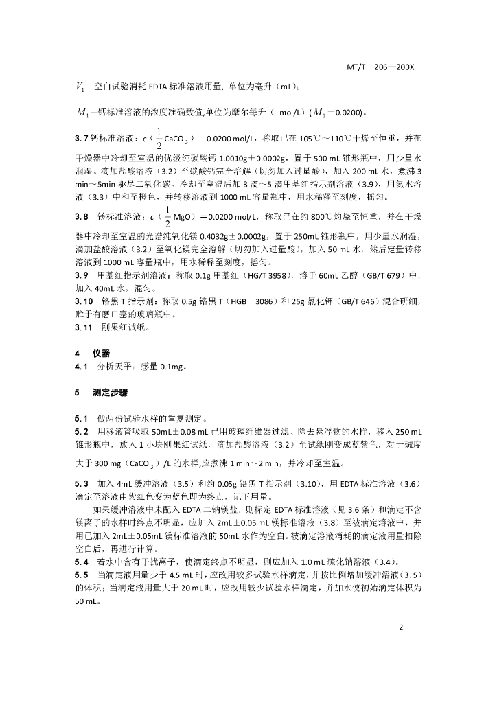 MT/T 206-2011 煤矿水硬度的测定方法