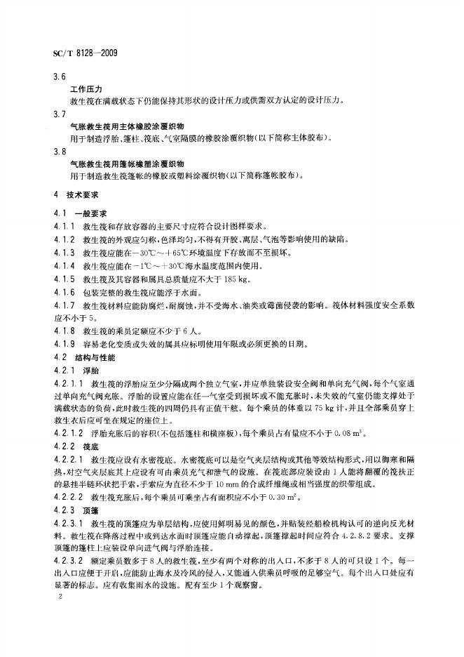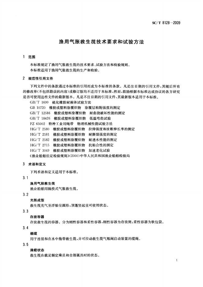 SC/T 8128-2009 渔用气胀救生筏技术要求和试验方法