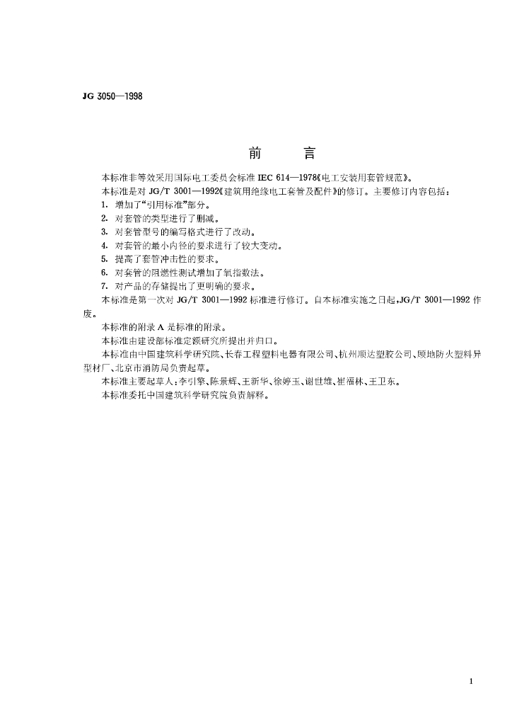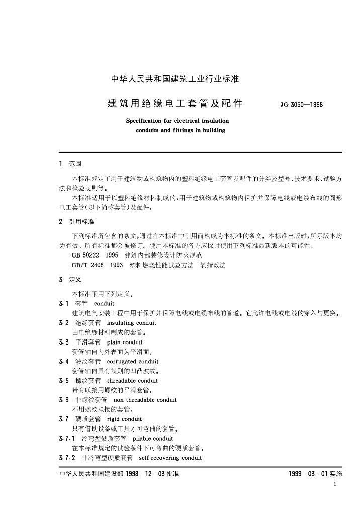 JG 3050-1998 建筑用绝缘电工套管及配件