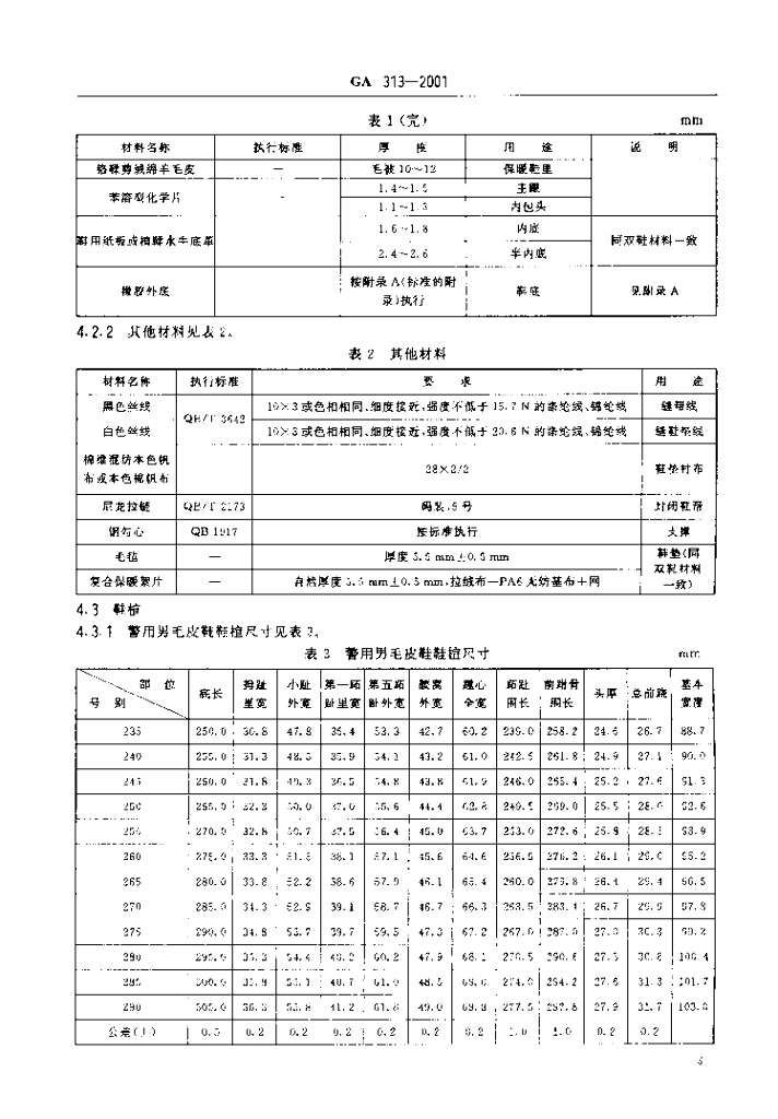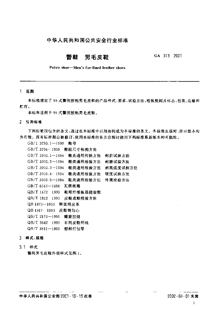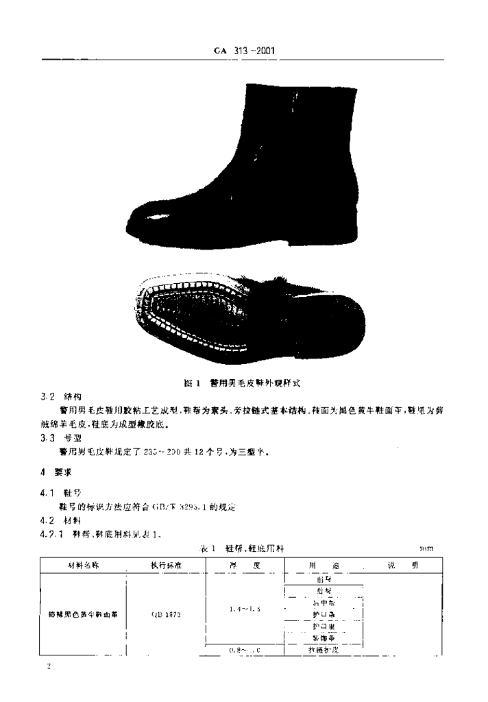 GA 313-2001 警鞋男毛皮鞋