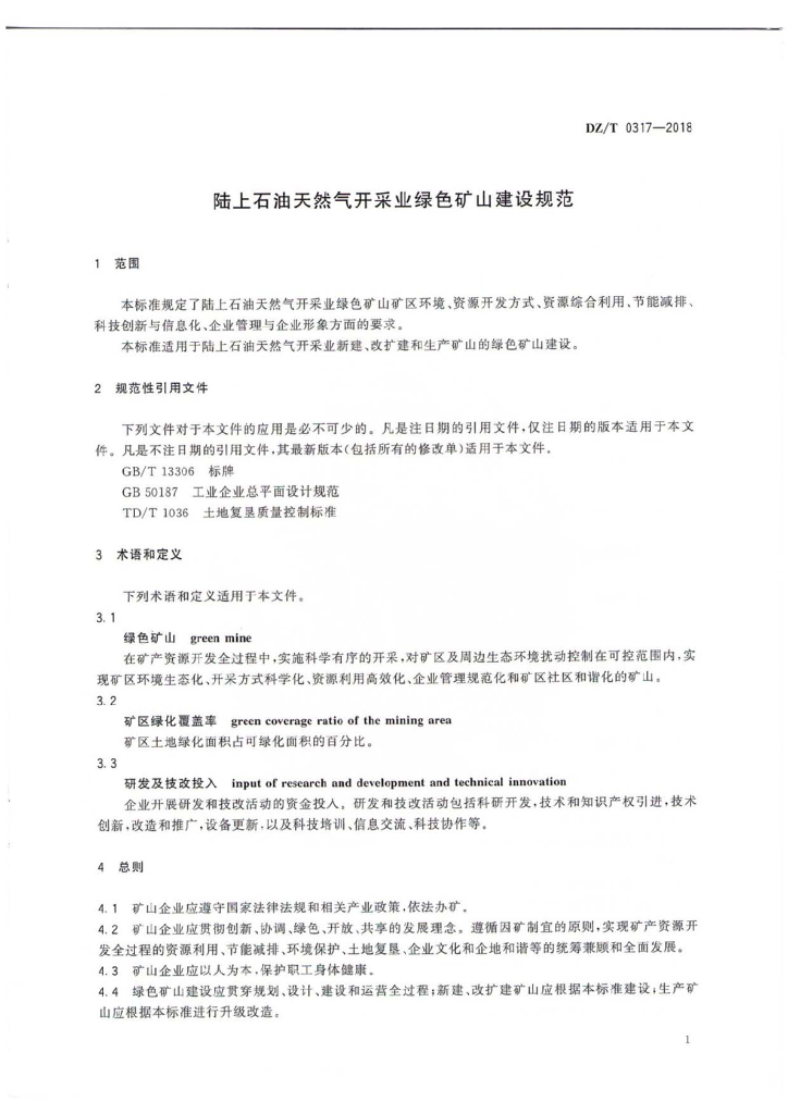 DZ/T 0317-2018 陆上石油天然气开采业绿色矿山建设规范