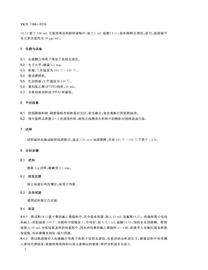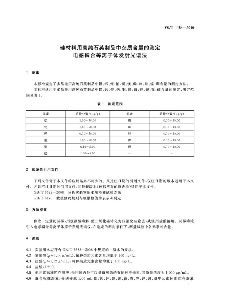 YS/T 1164-2016 硅材料用高纯石英制品中杂质含量的测定 电感耦合等离子体发射光谱法