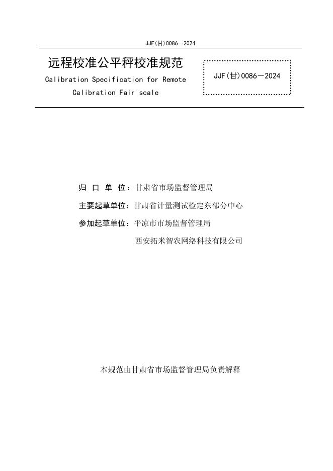 JJF(甘)0086-2024 远程校准公平秤校准规范