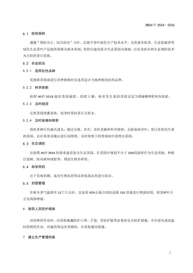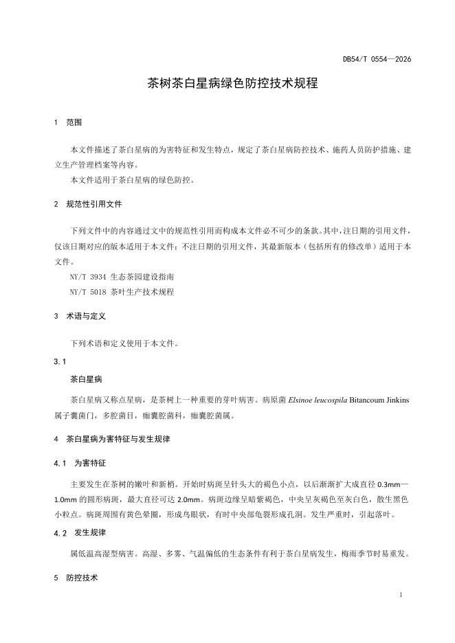 DB54/T 0554-2026 茶树茶白星病绿色防控技术规程