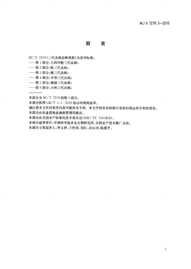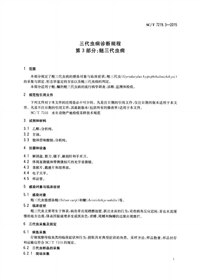 SC/T 7219.3-2015 三代虫病诊断规程 第3部分:鲢三代虫病