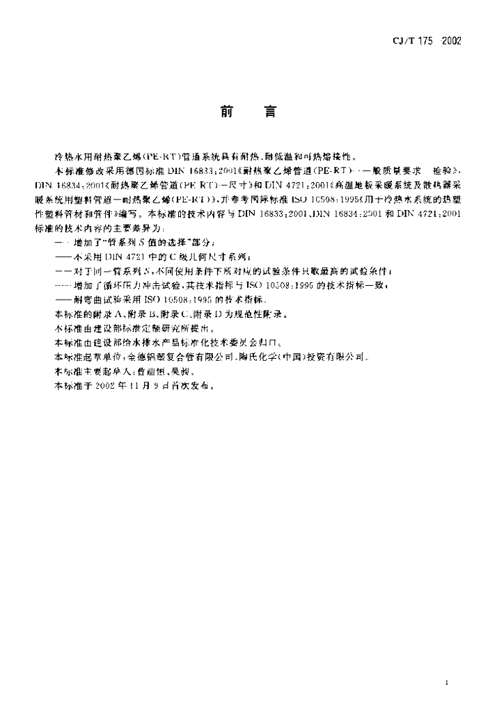 CJ/T 175-2002 冷热水用耐热聚乙烯(PE-RT)管道系统