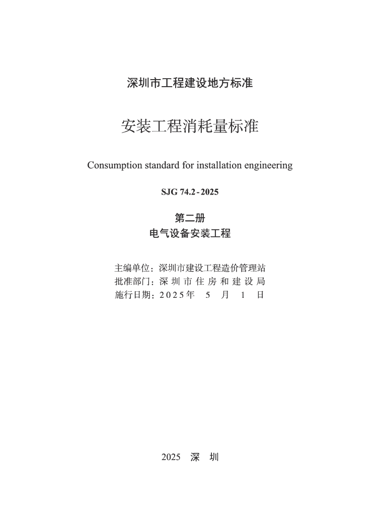 SJG 74.2-2025 安装工程消耗量标准 第二册 电气设备安装工程
