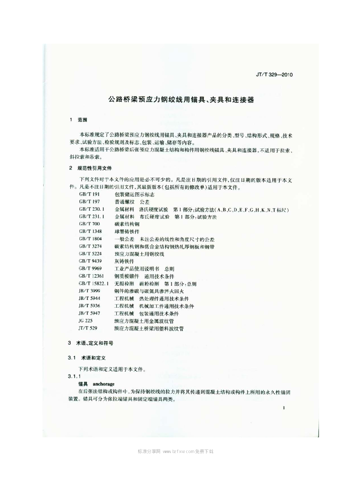 JT/T 329-2010 公路桥梁预应力钢绞线用锚具、夹具和连接器