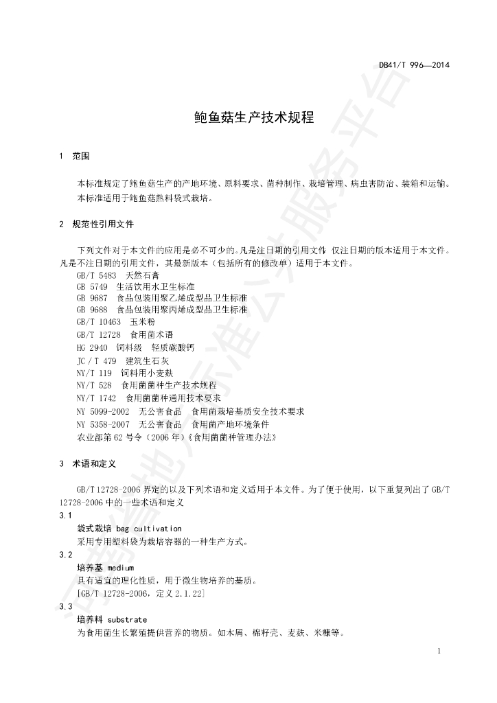 DB41/T 996-2014 鲍鱼菇生产技术规程