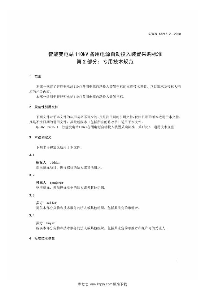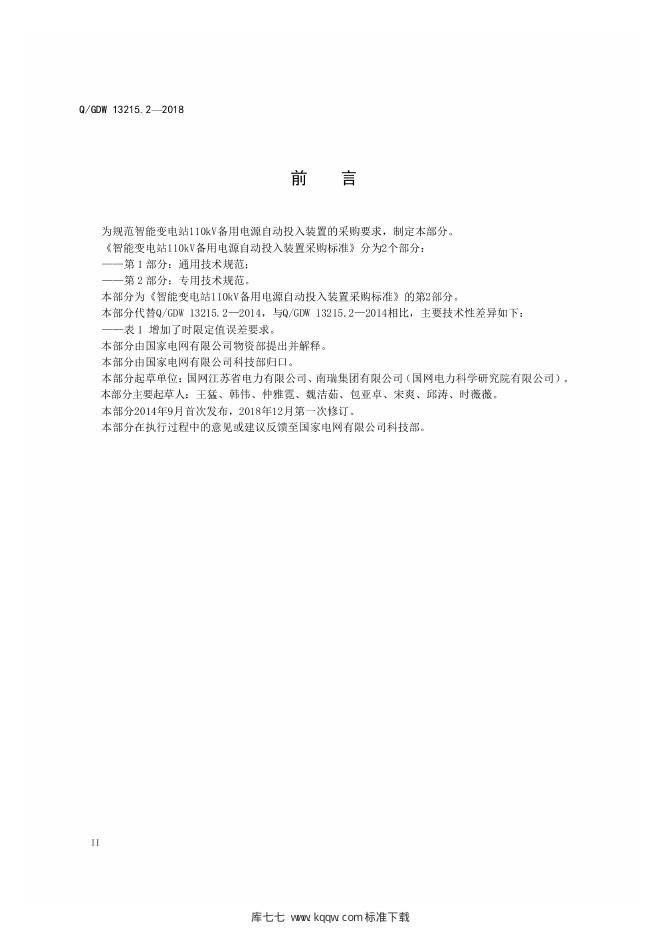 Q/GDW 13215.2-2018 智能变电站110kV备用电源自动投入装置采购标准 第2部分:专用技术规范