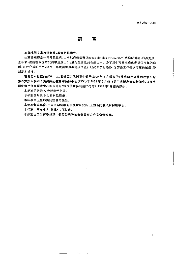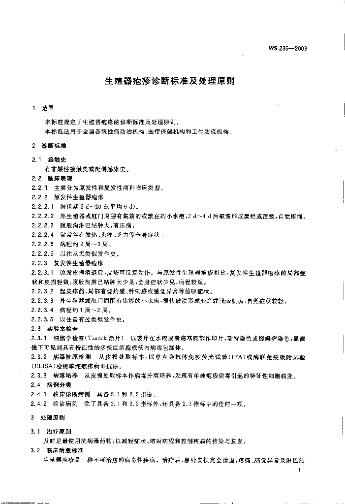 WS/T 236-2003 生殖器疱疹诊断标准及处理原则