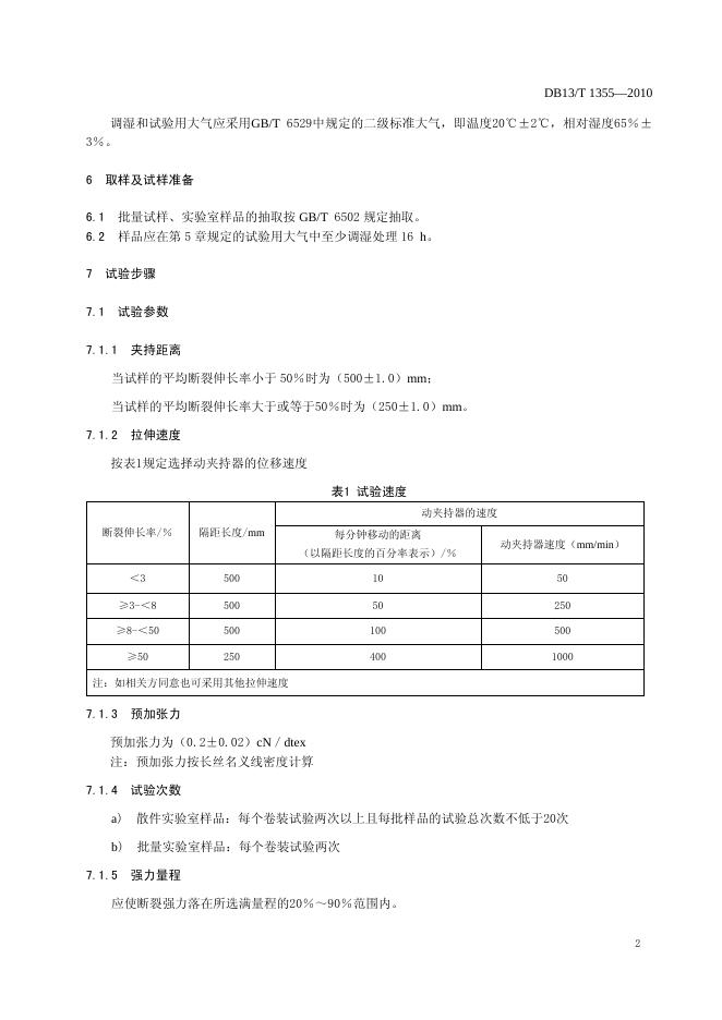 DB13/T 1355-2010 锦纶6综丝拉伸性能的测定
