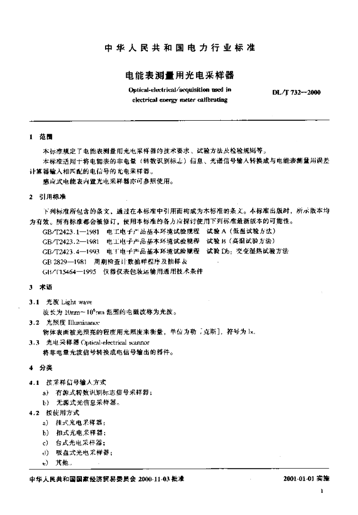 DL/T 732-2000 电能表测量用光电采样器