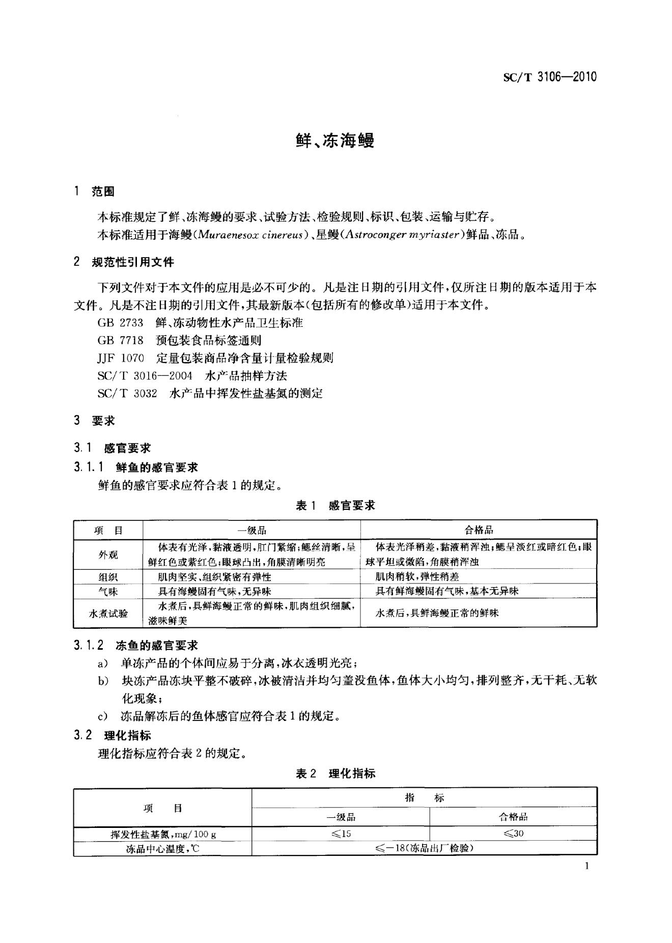 SC/T 3106-2010 鲜、冻海鳗