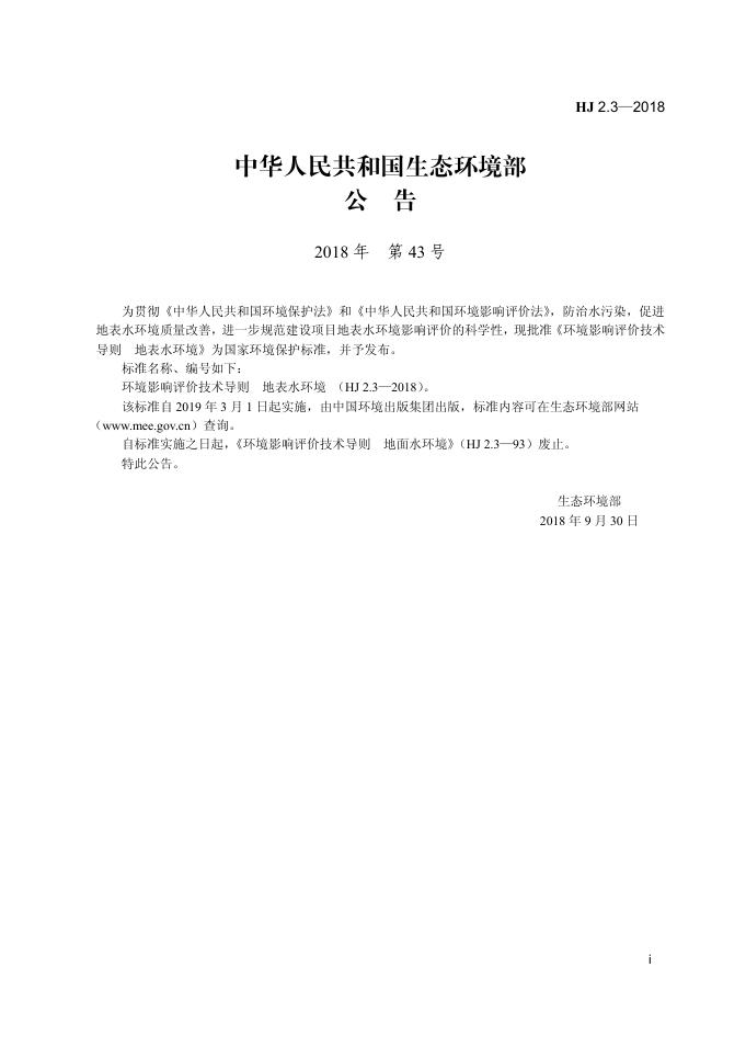 HJ 2.3-2018 环境影响评价技术导则 地表水环境