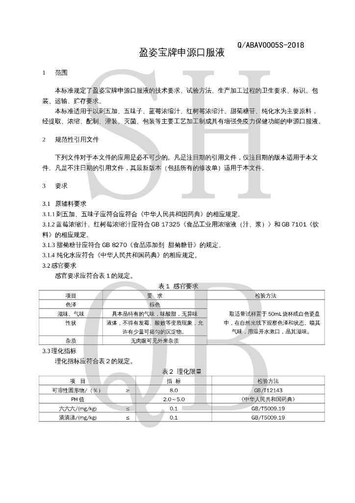 Q/ABAV 0005S-2018 盈姿宝牌申源口服液