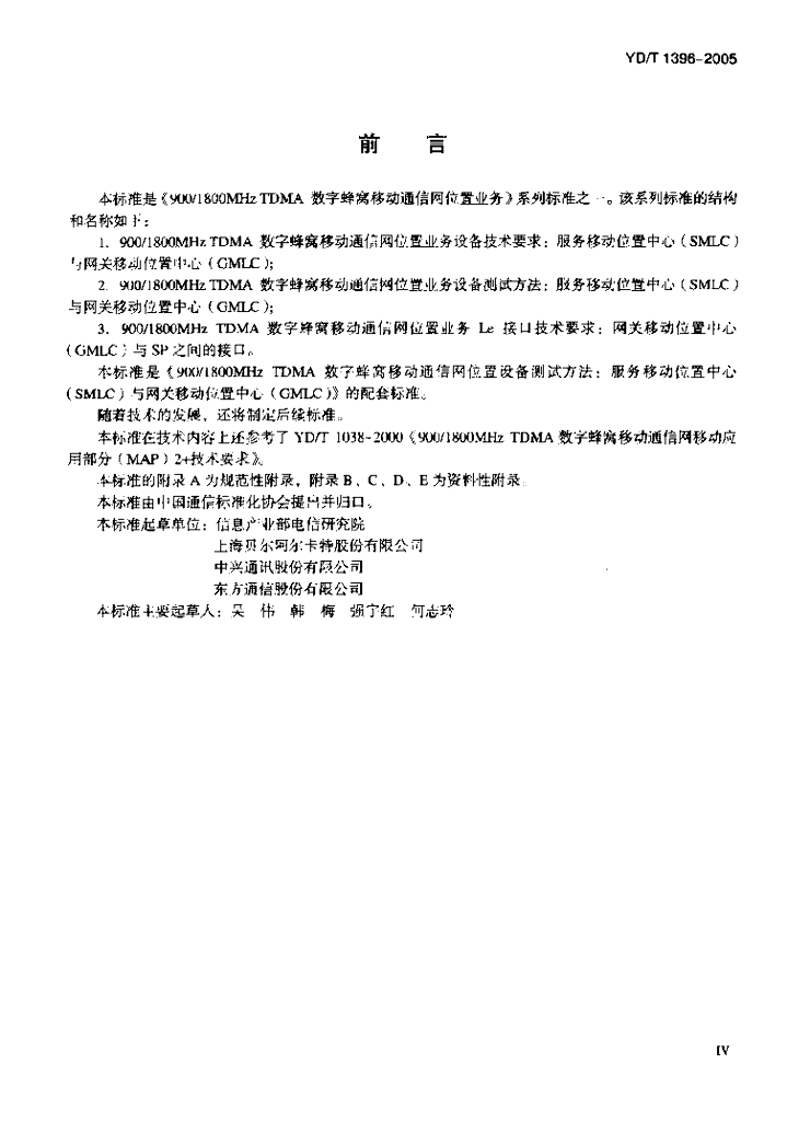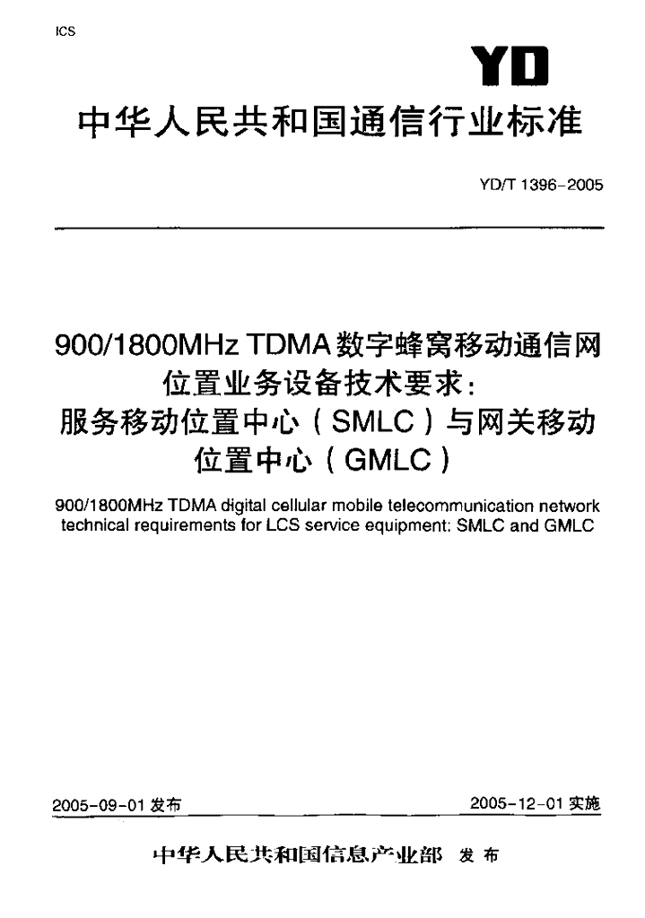 YD/T 1396-2005 900/1800MHz TDMA 数字蜂窝移动通信网位置业务设备技术要求:服务移动位置中心(SMLC)与网关移动位置中心(GMLC)