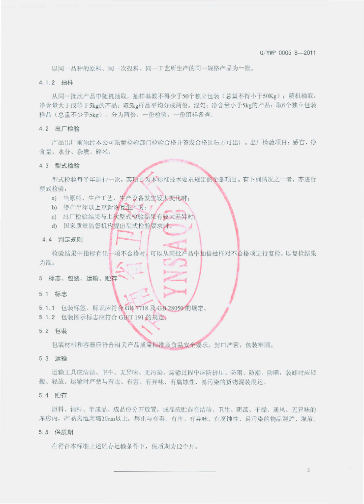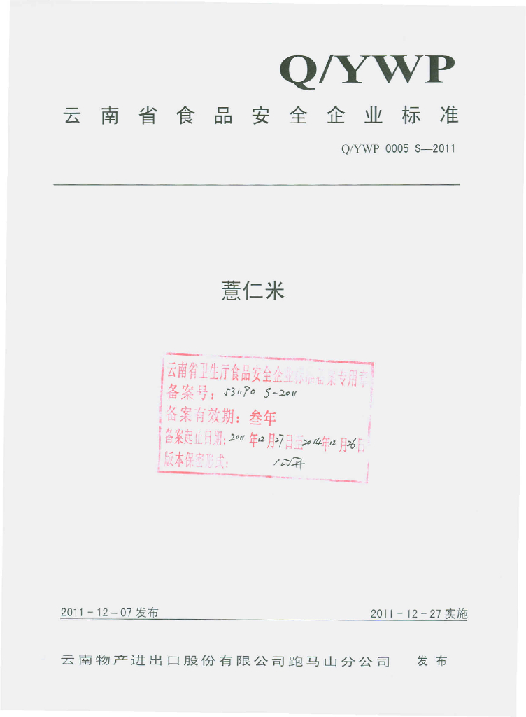 Q/YWP 0005S-2011 薏仁米