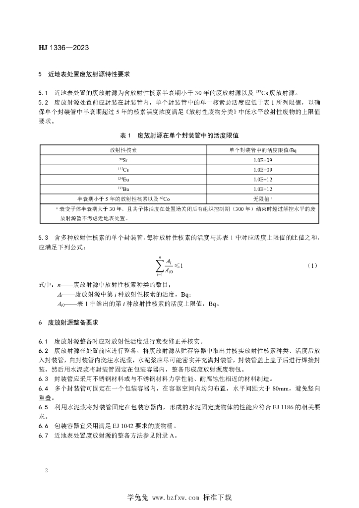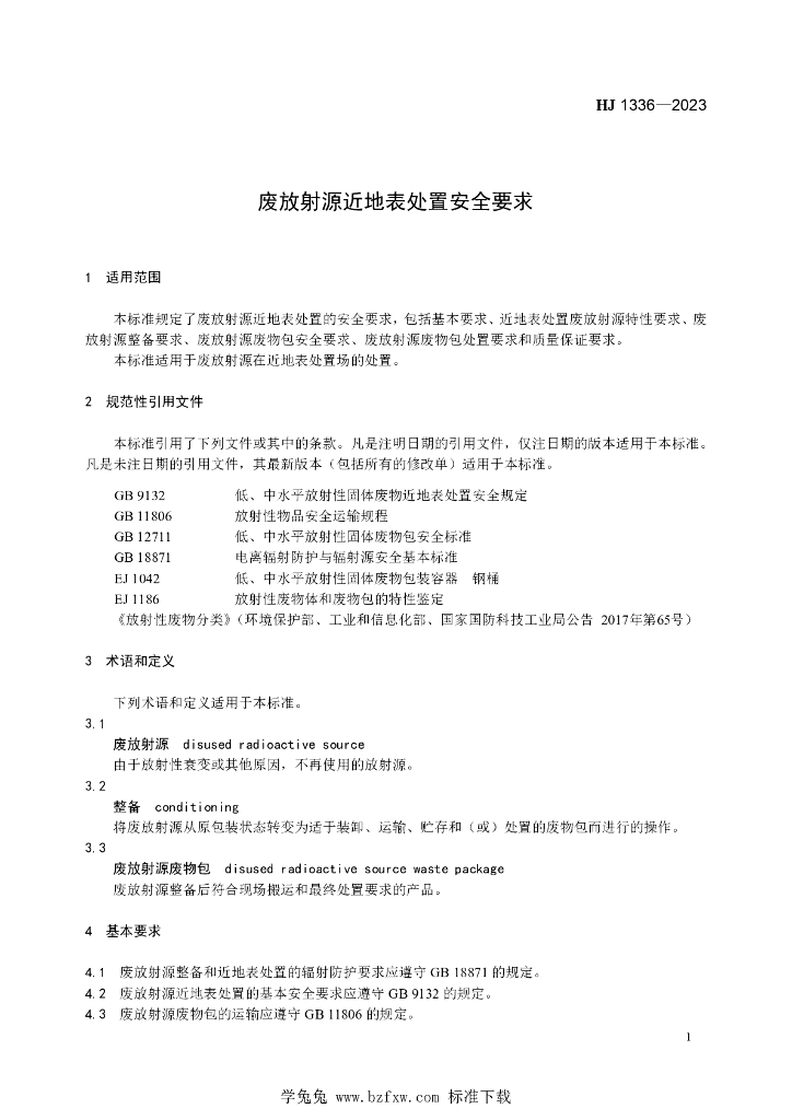 HJ 1336-2023 废放射源近地表处置安全要求