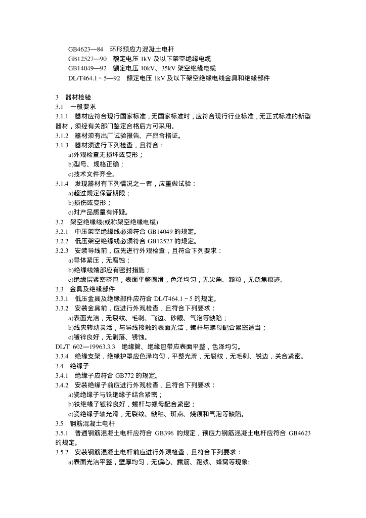 DL/T 602-1996 架空绝缘配电线路施工及验收规程