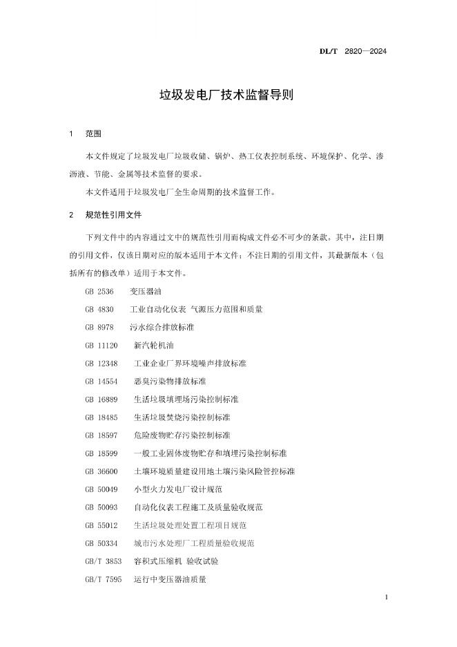DL/T 2820-2024 垃圾发电厂技术监督导则