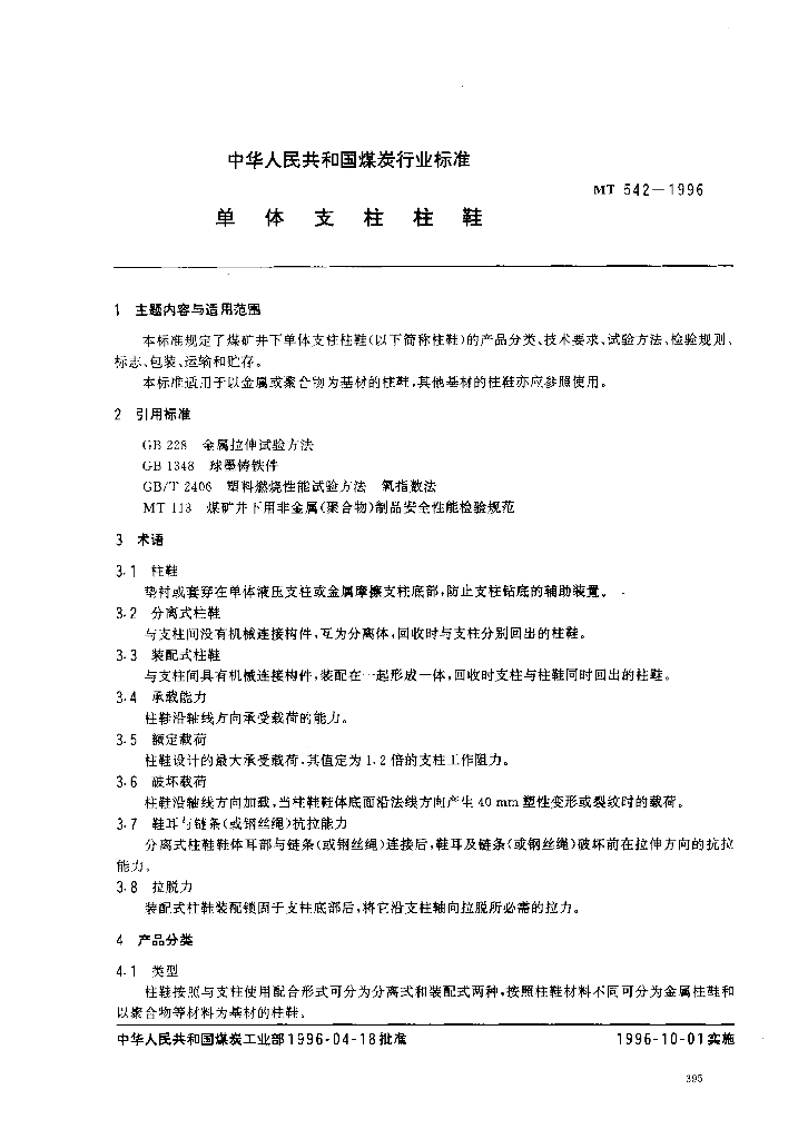 MT 542-1996 单体支柱柱鞋