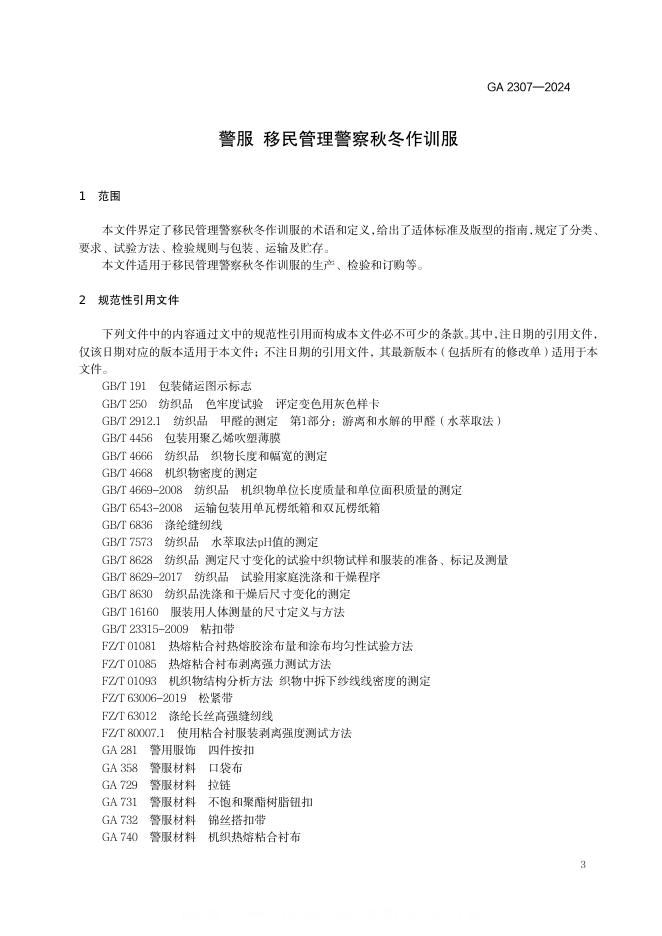 GA 2307-2024 警服 移民管理警察秋冬作训服(摘要版)