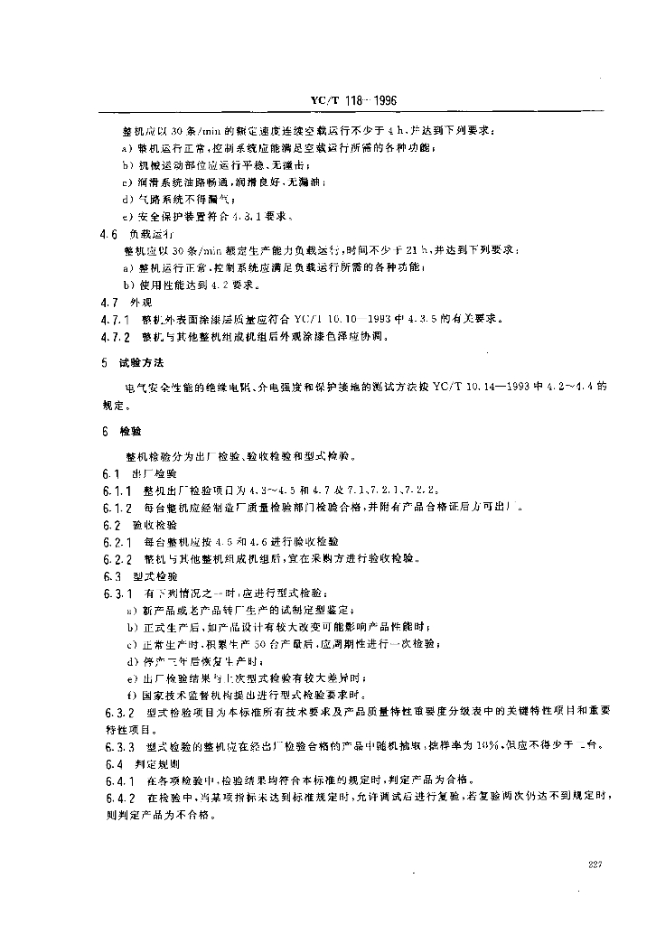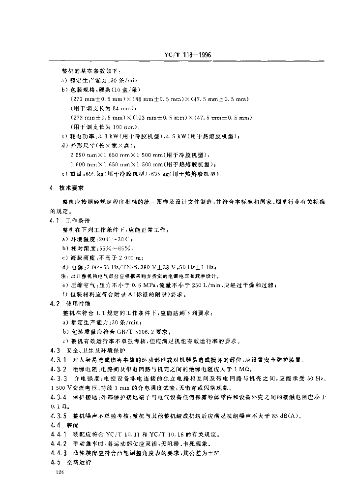 YC/T 118-1996 烟草机械 YB61型硬条包装机