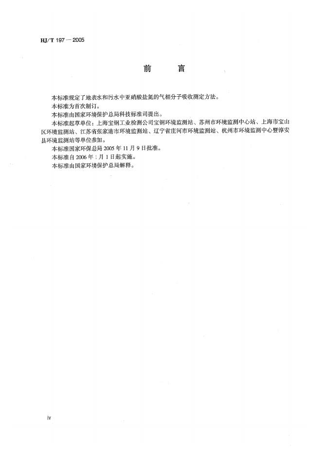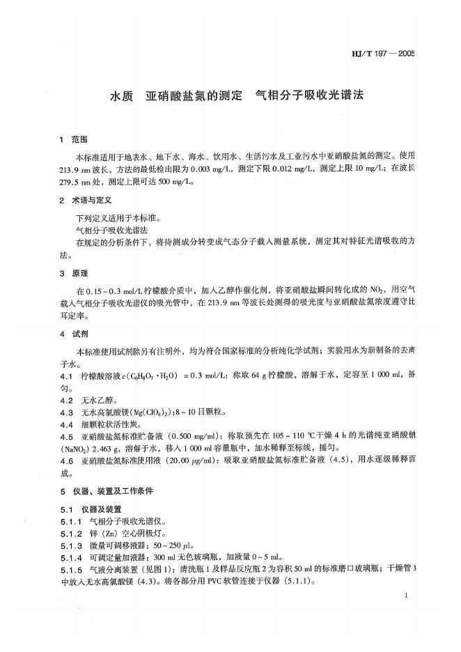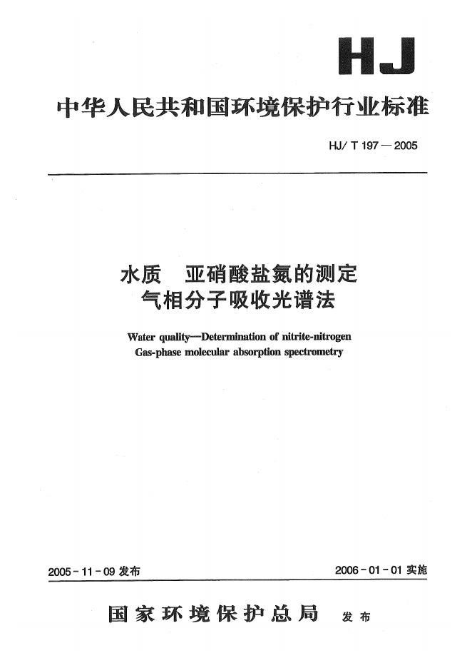 HJ/T 197-2005 水质 亚硝酸盐氮的测定 气相分子吸收光谱法