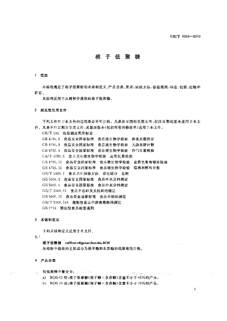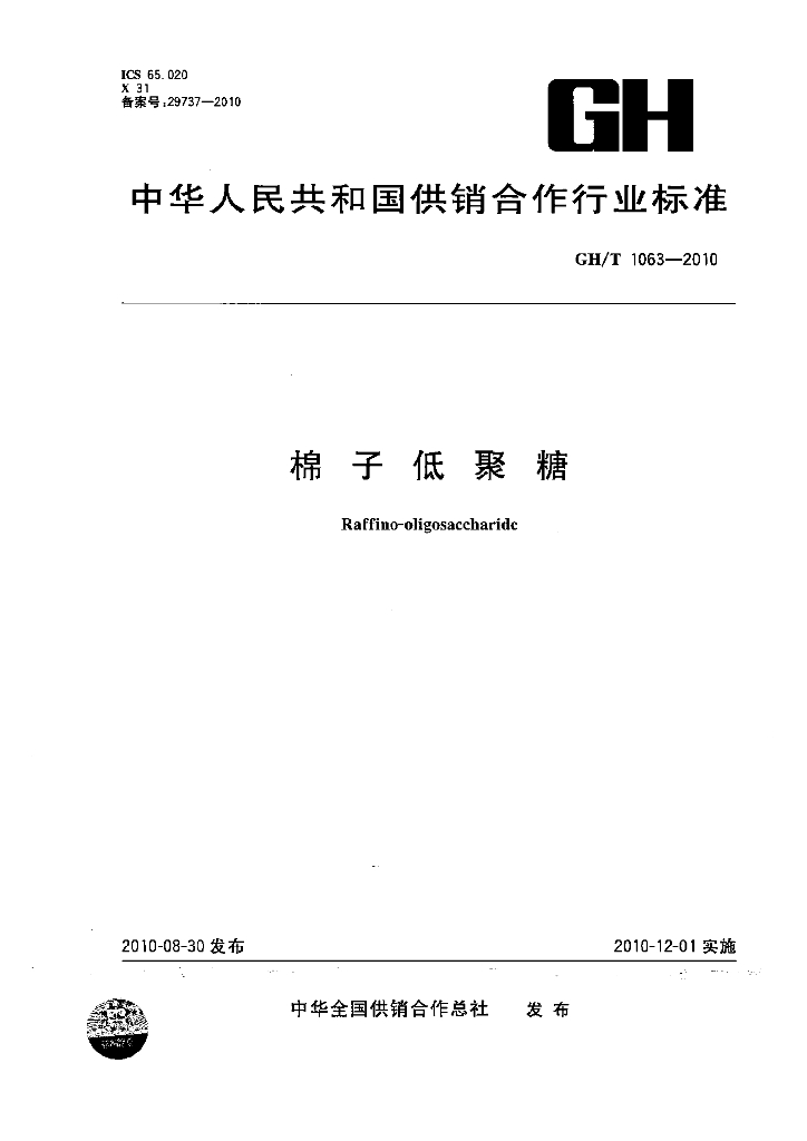GH/T 1063-2010 棉子低聚糖