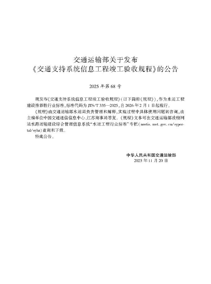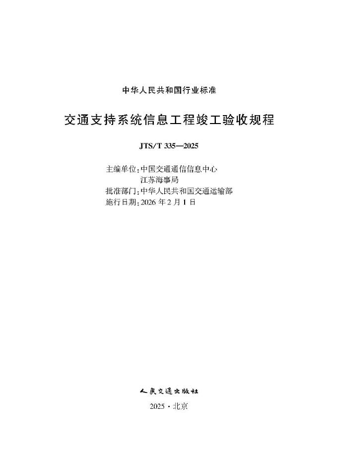 JTS/T 335-2025 交通支持系统信息工程竣工验收规程